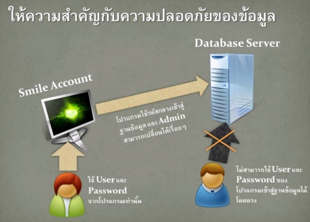 1.ใช้เทคโนโลยีสมัยใหม่ในการพัฒนา โปรแกรมบัญชี Smile Account ใช้เทคโนโลยีของ MS.NET ภาษาที่ใช้คือ c#.net ,XML Webservice ทั้งนี้เพื่อเพิ่มความสามารถใหม่ๆให้กับโปรแกรม และเพื่อข้ามข้อจำกัดบางอย่างในการพัฒนาโปรแกรมด้วยเทคโนฯเก่าๆ ด้วยเทคโนฯใหม่นี้จึงทำให้โปรแกรมเราที่ออกแบบเป็น Window Base แต่สามารถต่อใช้งานแบบออนไลน์ระหว่างสาขา ผ่าน http protocal ได้ (ไม่ใช่ terminal service) และมีการเข้ารหัสความปลอดภัยของข้อมูลที่ส่งผ่านระหว่างสาขา และยังได้มีการบีบอัดข้อมูลก่อนทำการส่งมายังเครื่อง Server อีกด้วย